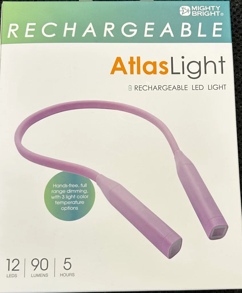 Rechargeable and bendable all-purpose neck light. Features 8 LEDs for energy efficient lighting in 3 degrees of color and adjustable for brightness.
