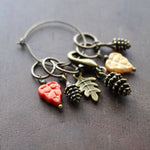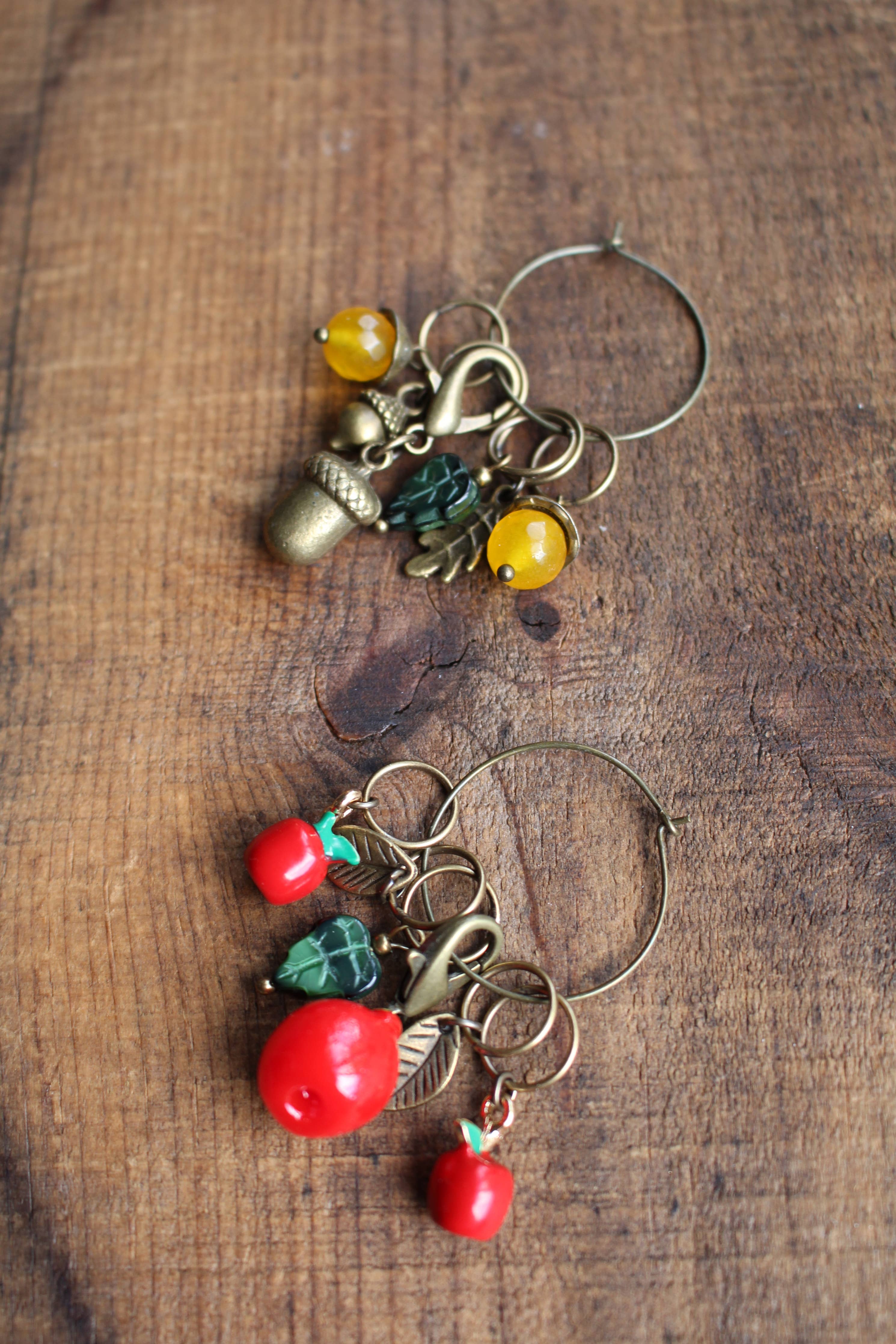 From apples and acorns to pumpkins and pinecones, these charming sets perfectly represent the fall season. Our Autumn Harvest stitch markers are made by hand with Czech glass beads along with enameled, resin and antique bronze charms. Each set consists of 5 ring stitch markers that fit up to a US10 needle and 1 removable progress keeper. Handcrafted in California with imported alloy metal components.