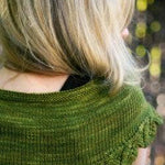 A beautiful, crescent shaped, little shawl that drapes beautifully around your shoulders and looks absolutely stunning wrapped around your neck as a scarf. The curved shape of the shawl is created through the use of short rows. The leafy border is knit on once the body of the shawl is completed.
