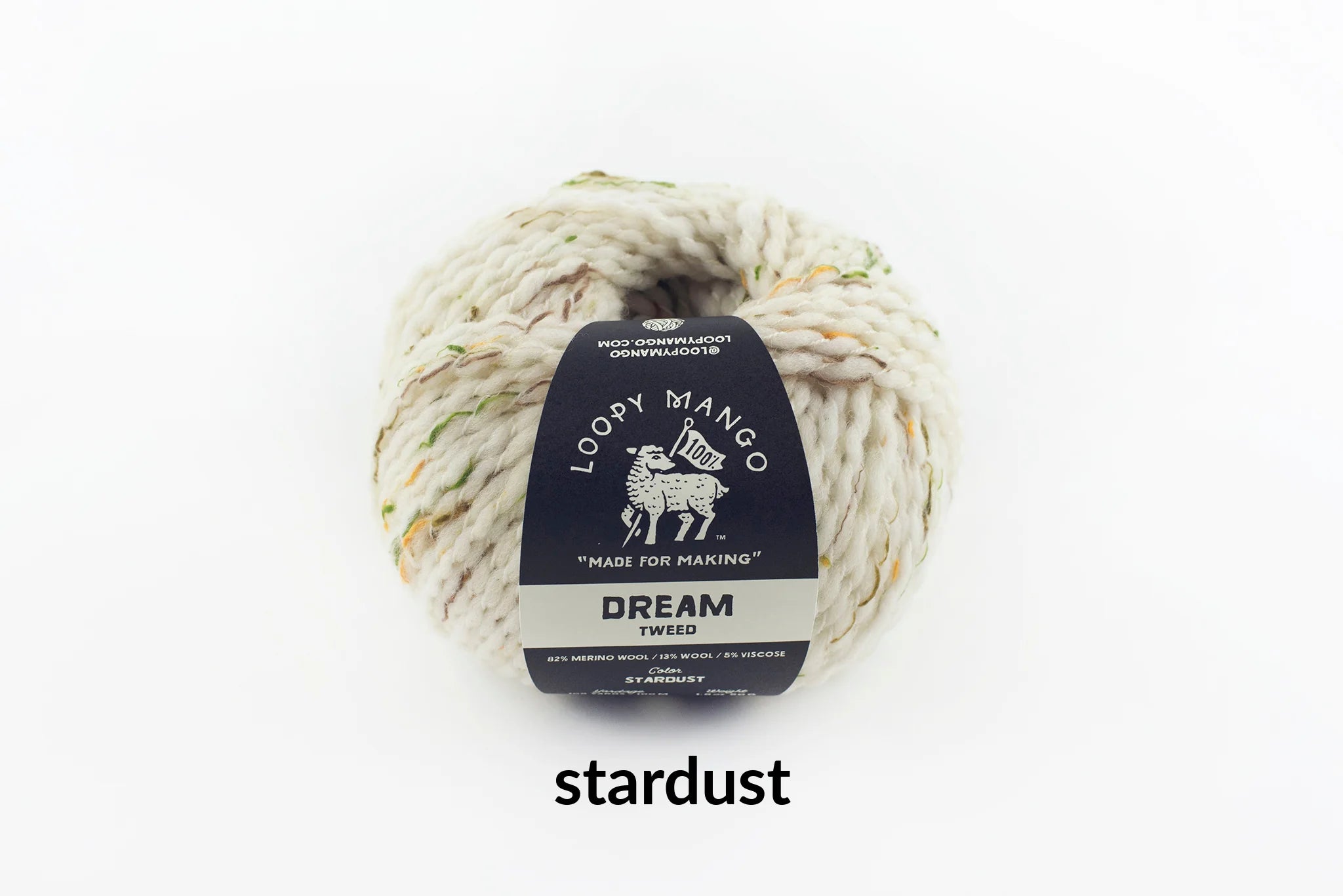 The tweed colors have a slightly different fiber content: 82% Merino wool, 13% wool, 5% viscose