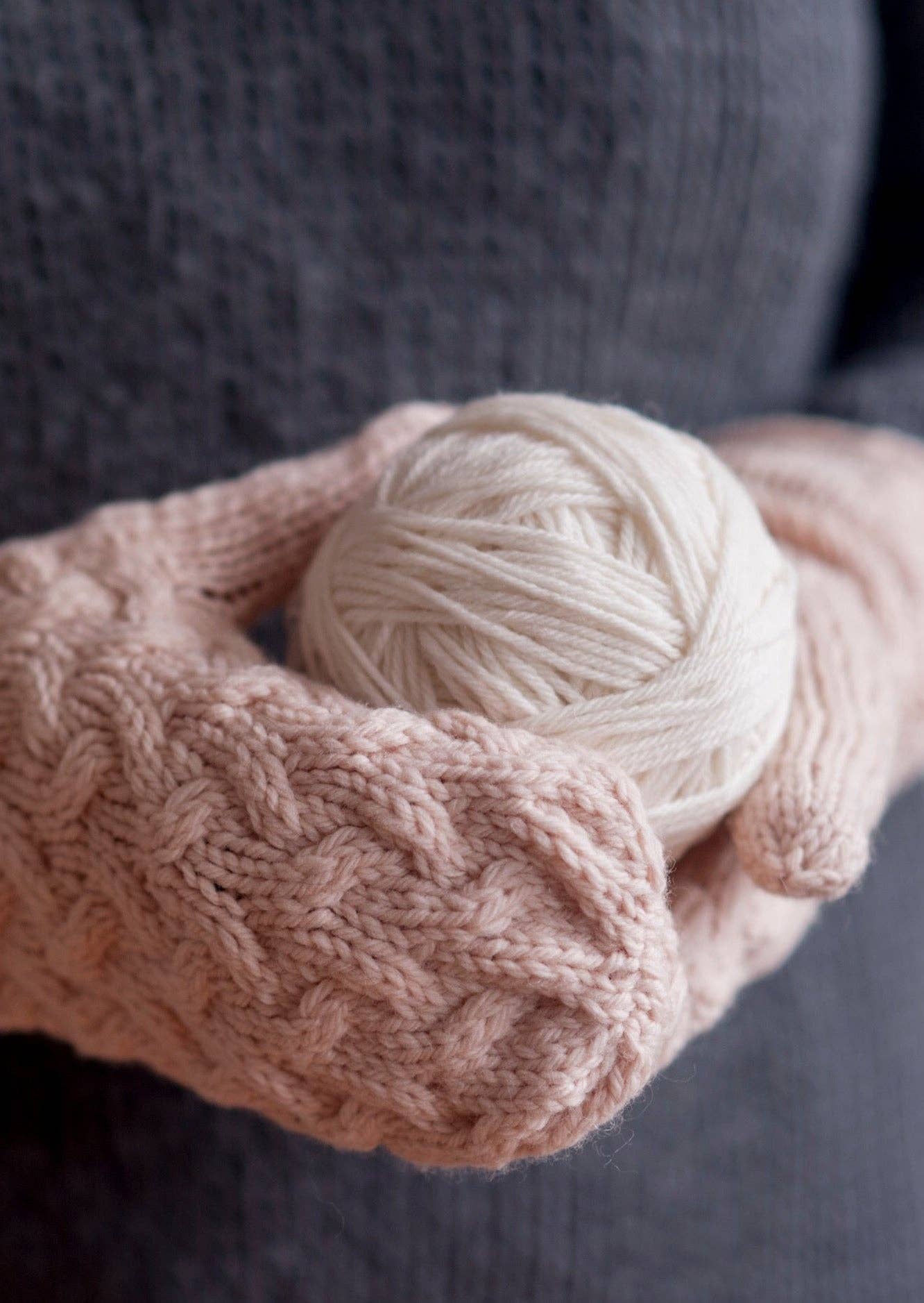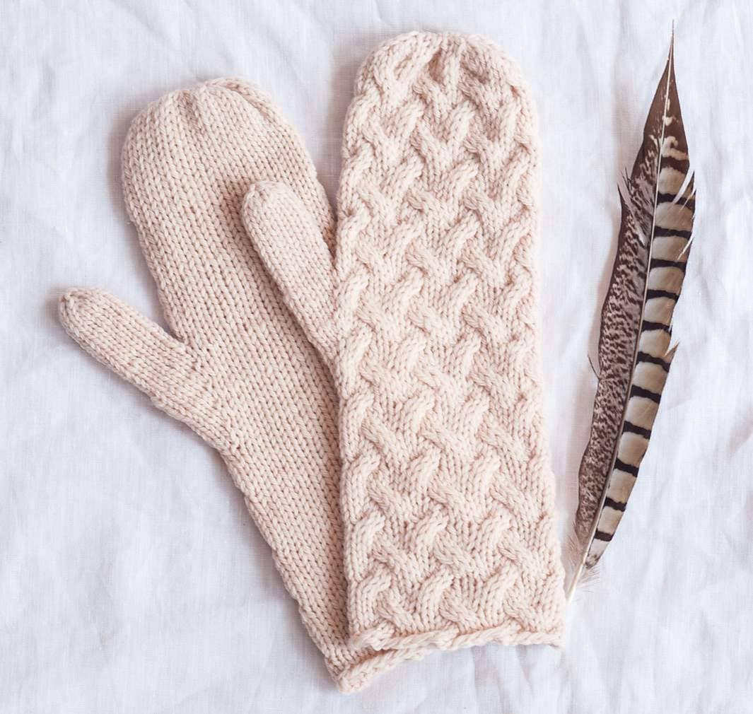 Lark loves cables! These fluffy mittens are worked at a loose gauge for trapping warm air and keeping your hands toasty. The cable pattern on the top of the hand is simple and sweet, and smooth stockinette on the palm keeps functionality intact. Designed by Dawn Catanzaro.