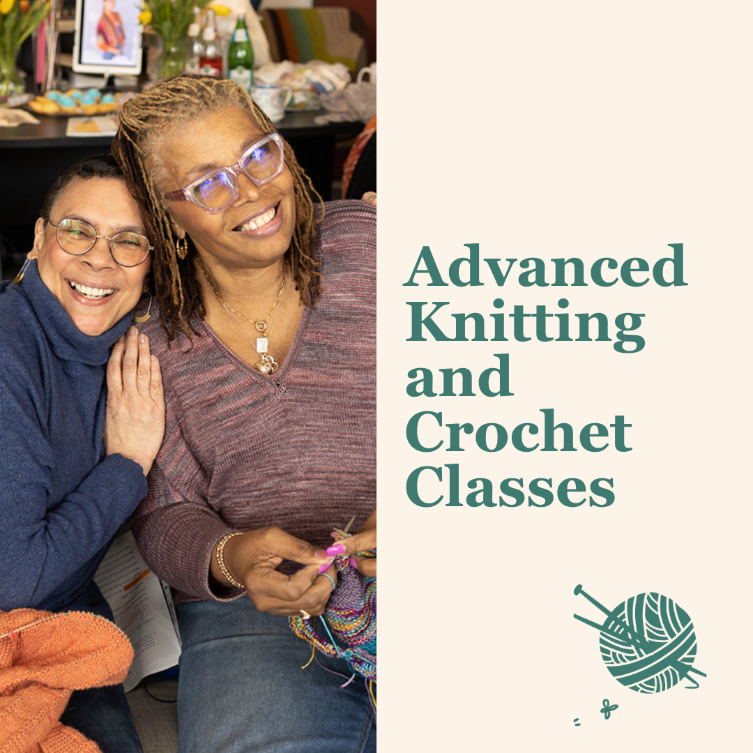 During our intermediate and advanced drop in classes you'll be among other intermediate and advanced knitters and crocheters in our inclusive, welcoming environment.