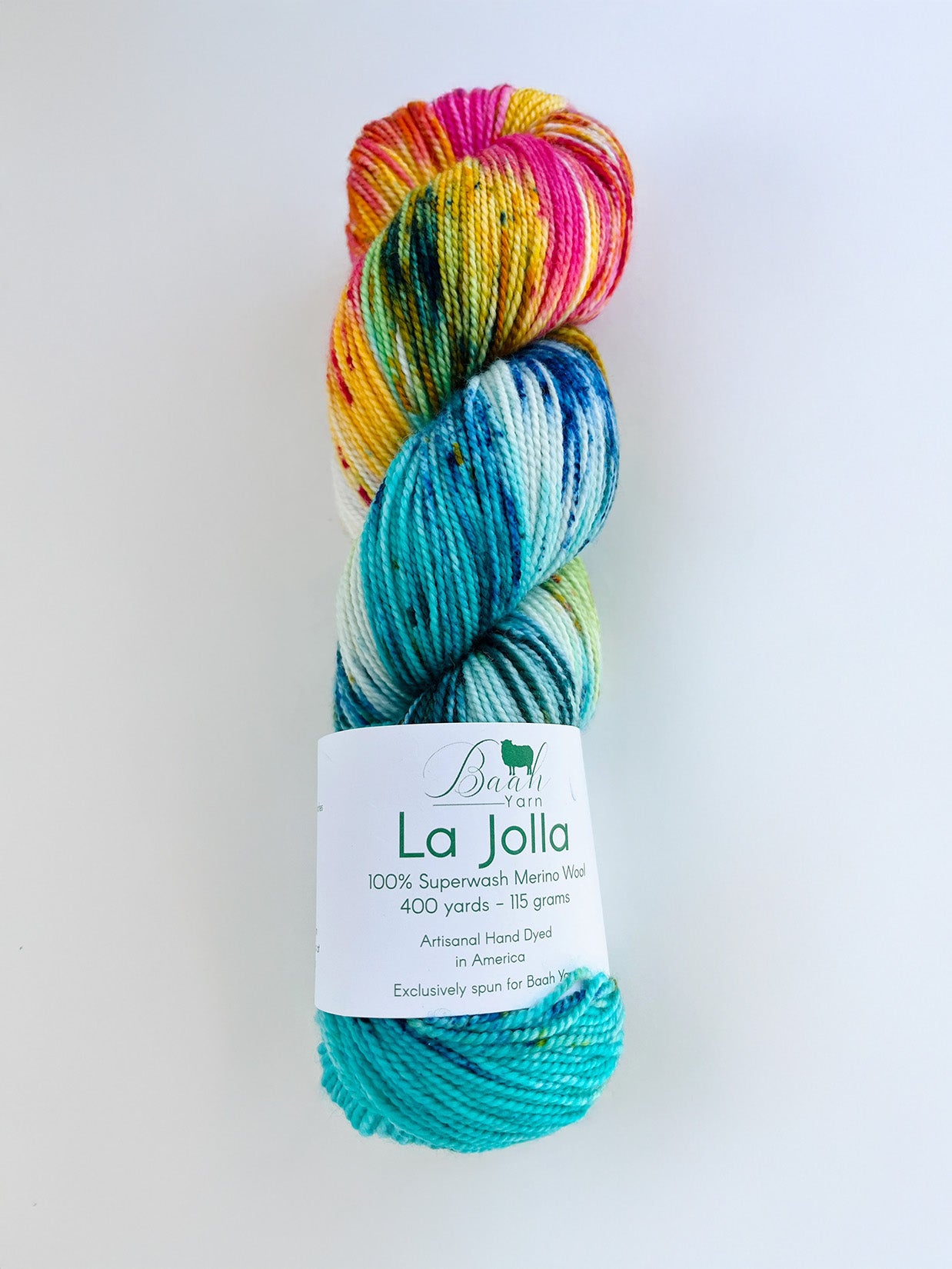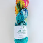 La Jolla, Baah Yarn’s most popular and sought-after product, is a fingering-weight yarn made of 100% superwash merino wool. Each unique skein of Baah Yarn La Jolla is carefully hand painted in small batches in their Las Vegas studio, using only high-quality yarn and professional grade dyes. Please note that the colors shown on your screen may vary due to differences in your computer's display calibration. As with all hand-dyed yarns, each skein takes on a slightly different appearance (even when dyed together!) No two will look identical, which makes each skein unique!