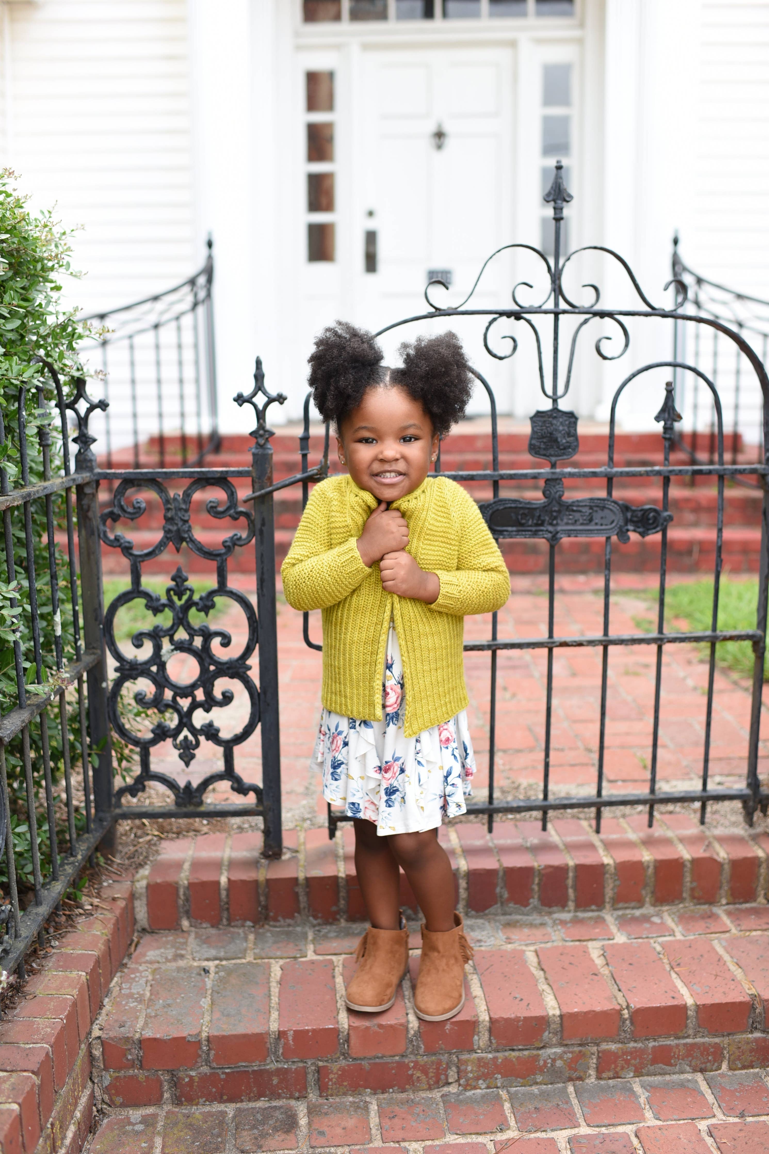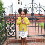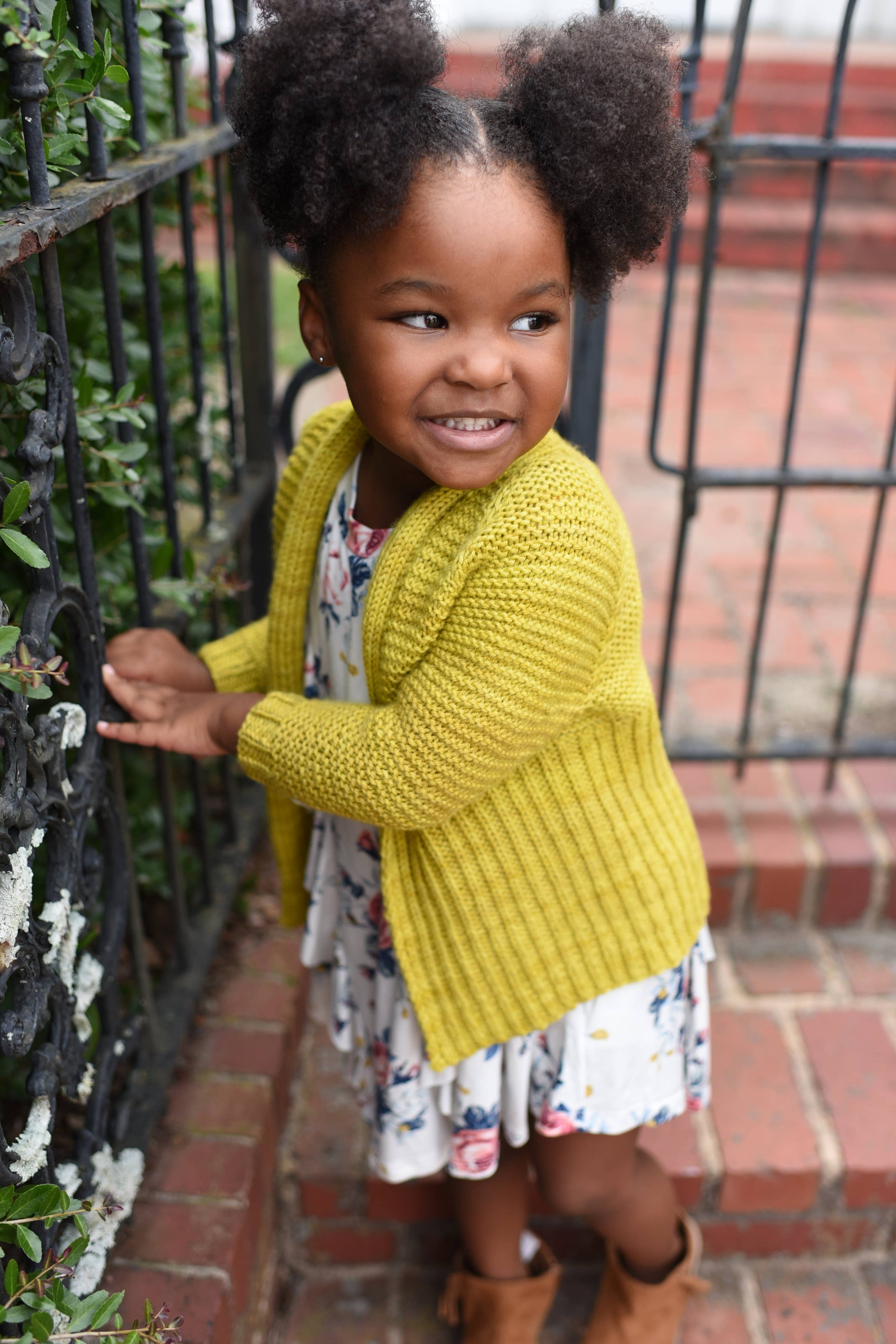 Knit up in a dk weight yarn, this charming, go-with-everything cardigan is knit seamlessly from the top down making it easy to adjust the length to fit the intended little one.