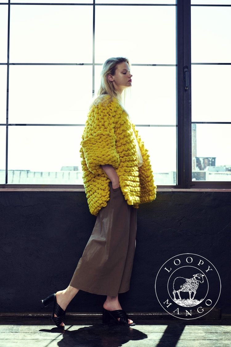 It is a beautiful hard cover with lots of color illustrations for projects as well as an extensive techniques section. Yarns used are Merino No. 5, Mohair So Soft and Big Loop. Book consists of our best selling Loopy Mango patterns with 2 designs that are exclusive to the book - Recluse Cardigan (pictured in pink) and On Point Tunic (pictured on the cover).