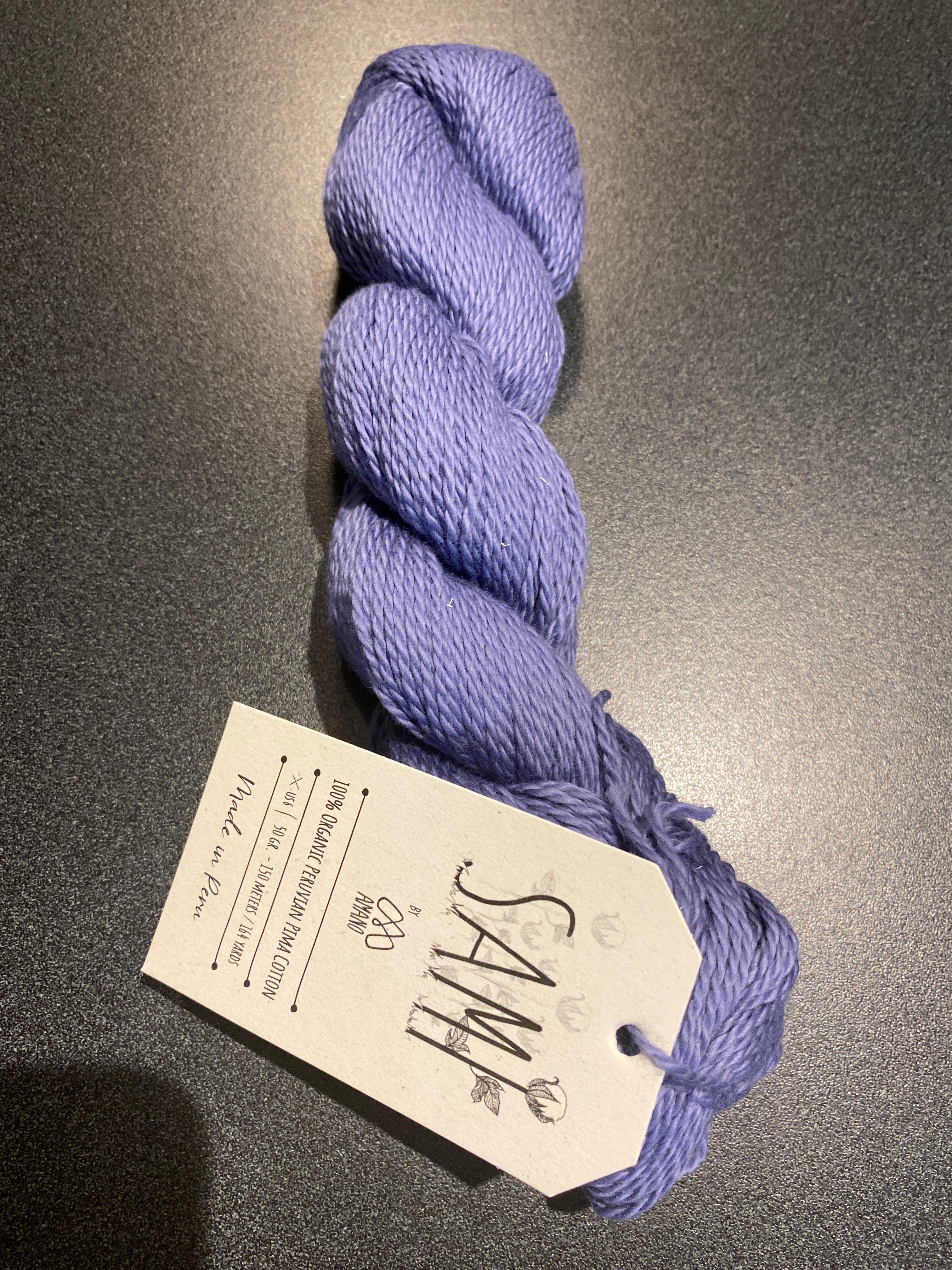 The subtle sheen & soft, “brushed” character of this 100% organic pima cotton yarn makes it a perfect choice for warmer weather knits. It is a plied yarn with a gentle twist that keeps the yarn from being too dense or heavy. The versatile DK weight is ideal for tees, tanks, cardigans & bandanas.