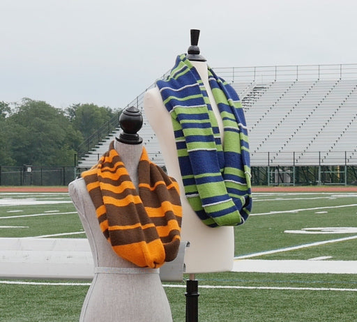 September 5th marks the return of our Scoreboard knit-together, based on the unique and interactive cowl pattern of the same name. Created by the incomparable Michelle "Knit Purl" Hunter for skacel, Scoreboard yields a hand-knit wearable record of your favorite professional or college football team's season, with each row representing both points scored and points allowed.