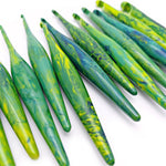 Virgo Streamline Zodiac Crochet Hooks feature lovely swirls of greens and blues with vibrant yellow accents.